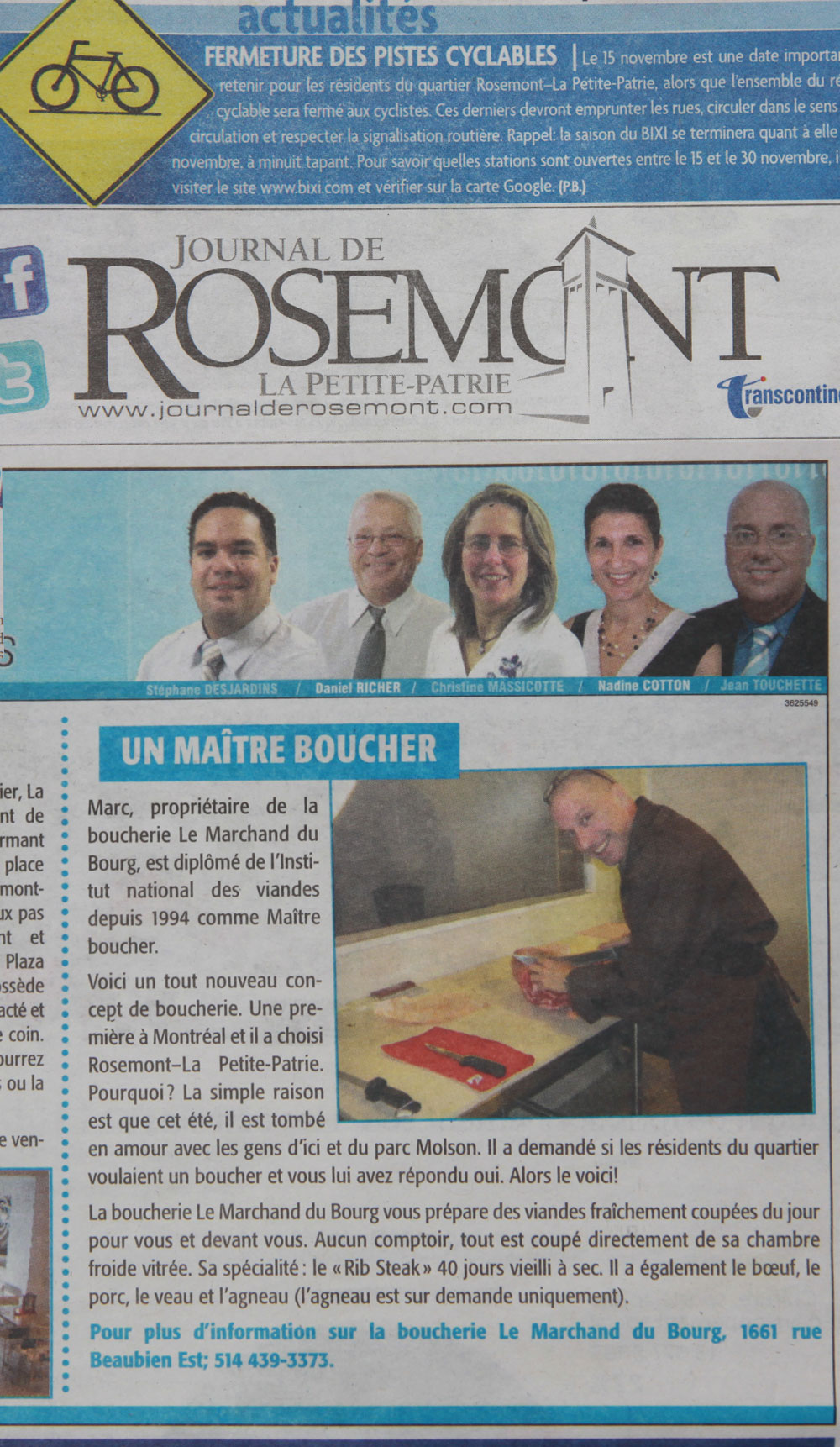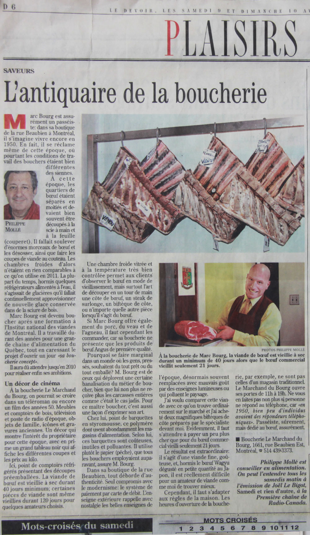 Marc Bourg, un boucher pas tout à fait comme les autres, d'ailleur notre confrère Philipe Nolet du quotidien Le Devoir l'a califier d'antiquaire de la boucherie, situé au 1661 Beaubien Est (angle Papineau) Le marchand...