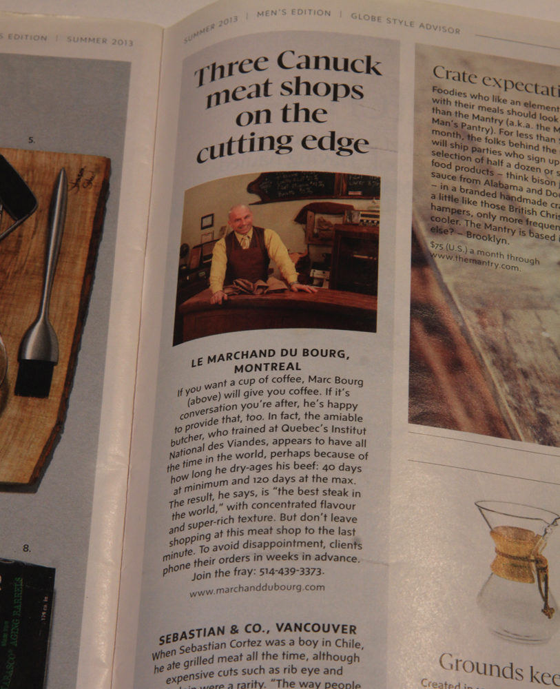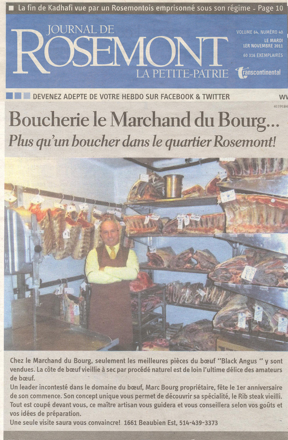 Ceux qui lisent moindrement La Presse ou Le Devoir ont entendu parler de lui, je parle bien entendu de "Monsieur steak" alias Le Marchand du Bourg ayant pignon sur rue au 1661 Beaubien Est (angle Papineau).