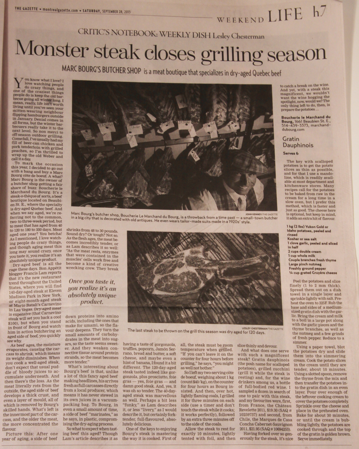 Entre-temps, je me demande ce que Chartier aurait fait avec cette belle pièce de boeuf d’un kilo, vieillie à sec 40 jours sur crochet par nul autre que le maître boucher Marc Bourg, de la boucherie Le Marchand du Bourg...