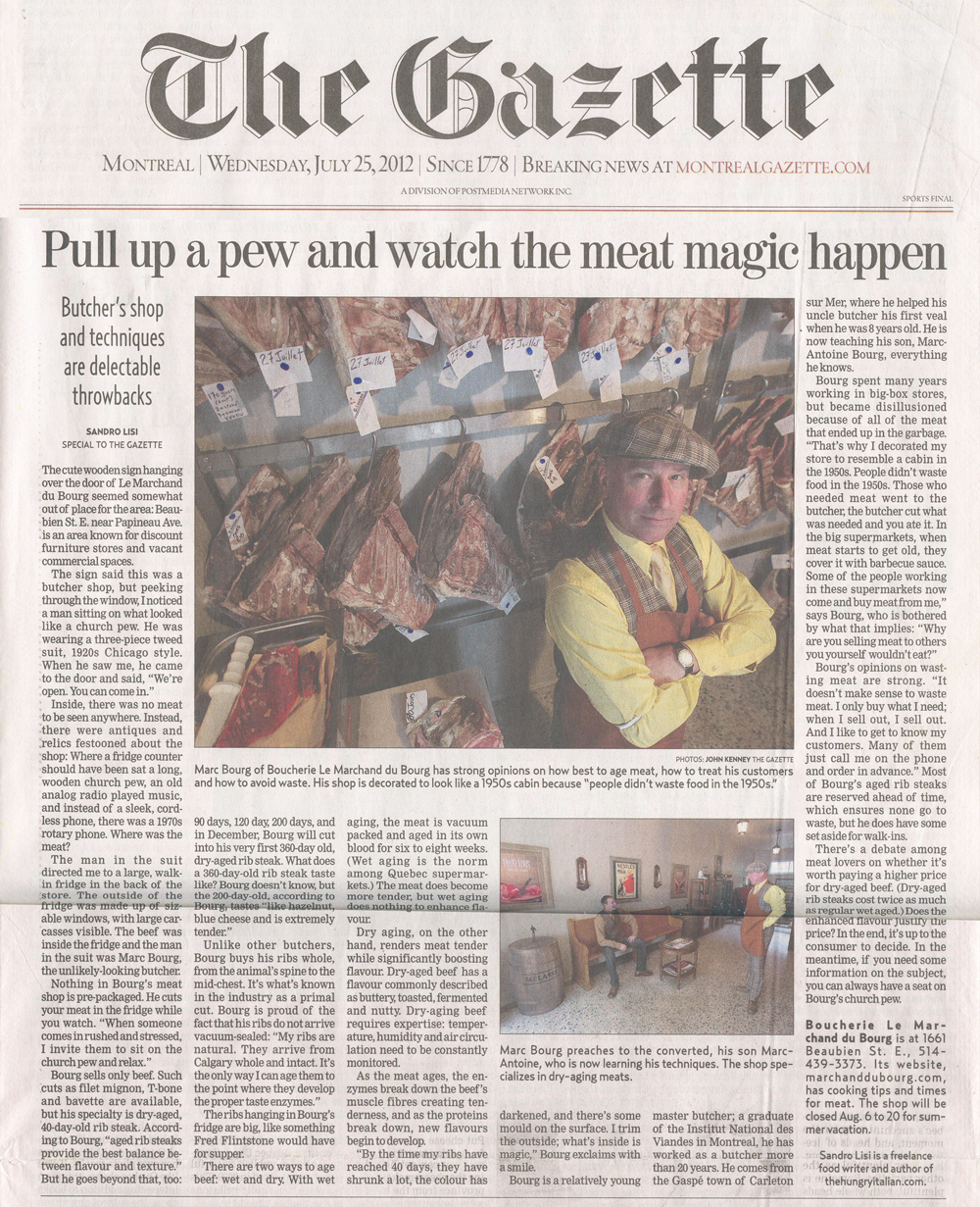 Ceux qui lisent moindrement La Presse ou Le Devoir ont entendu parler de lui, je parle bien entendu de "Monsieur steak" alias Le Marchand du Bourg ayant pignon sur rue au 1661 Beaubien Est (angle Papineau).