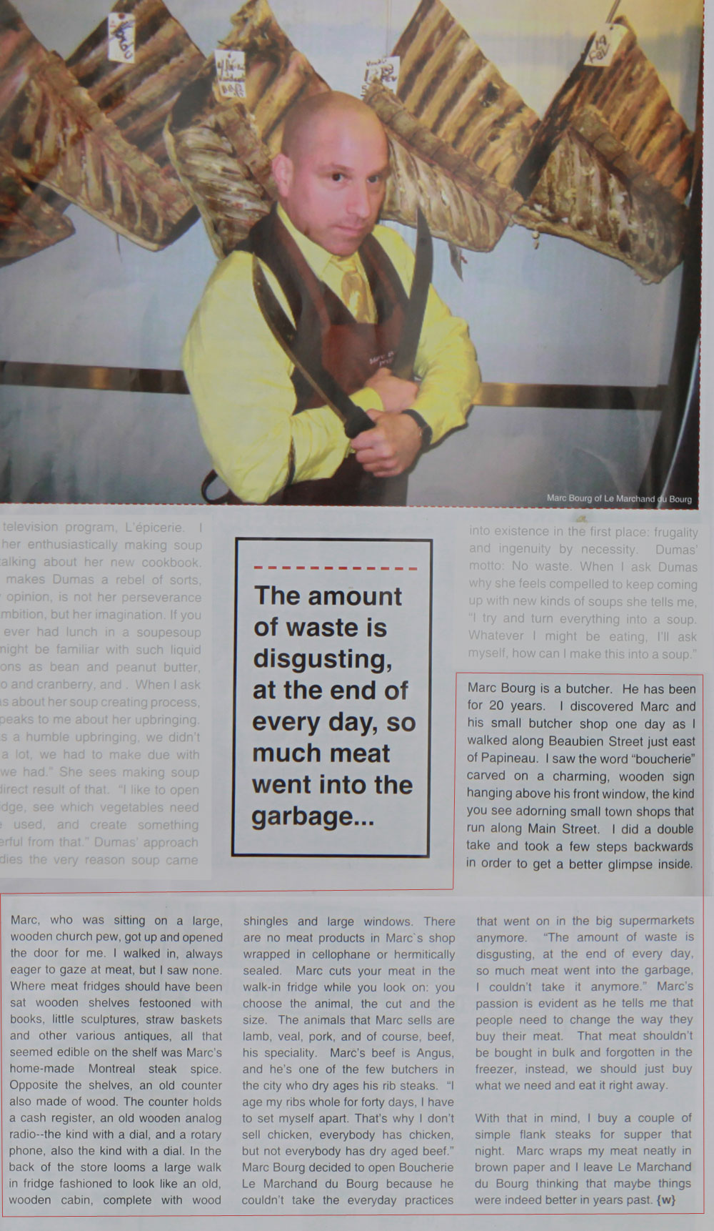 Marc Bourg, un boucher pas tout à fait comme les autres, d'ailleur notre confrère Philipe Nolet du quotidien Le Devoir l'a califier d'antiquaire de la boucherie, situé au 1661 Beaubien Est (angle Papineau) Le marchand...