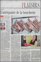 Le Marchand du Bourg sells only beef. Such cuts as filet mignon, T-bone, and bavette are available but his speciality is dry aged 40-day-old rib steak. According to Bourg, "aged rib steaks provide...